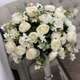 Aranjament floral impresionant, realizat din flori artificiale premium in nuante delicate de alb-crem, combinate cu elemente verzi pentru un aspect proaspat si natural. Suportul inalt, cu design elegant si detalii metalice cromate, adauga rafinament si stabilitate compozitiei.