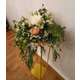 Un aranjament rafinat realizat din flori artificiale in nuante de alb si roz pastel.