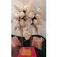 Acest aranjament floral de 50 cm diametru imbina frumusetea florilor artificiale albe cu eleganta naturala a pampoasului decorativ, creand o compozitie spectaculoasa si rafinata. Trandafirii albi, simbol al puritatii si al elegantei, se imbina armonios cu orhideele sofisticate si cu accentele diafane de pampas, oferind volum si textura intregului aranjament.