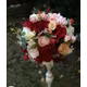 Aranjament floral delicat, cu diametrul de 25 cm, realizat din trandafiri si flori in nuante de grena intens, rosu vibrant si roz pal. Contrastul cald dintre culori ofera un efect elegant si romantic, perfect pentru decoruri de eveniment.
