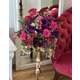 Aranjament floral spectaculos, cu diametrul de 40 cm. Realizat din flori bogate in nuante elegante de mov inchis. Designul luxuriant aduce rafinament si unicitate oricarui decor.