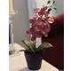 Un aranjament floral artificial elegant, realizat din orhidee din silicon in nuante de grena cu accente roz deschis, care redau perfect aspectul natural al florilor. Florile sunt completate de frunze verzi si asezate intr-un ghiveci negru clasic, usor de integrat in orice decor.