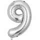 Balon Folie Cifră 9 – Argintiu, 41 cm
