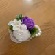 Completeaza tinuta domnisoarelor de onoare cu aceste bratari elegante, realizate din flori de sapun mov parfumate, accesorii delicate de perlute si frunze verzi decorative. Fiecare bratara este lucrata cu atentie si are un design rafinat, oferind un plus de feminitate si stil in ziua evenimentului. Sunt ideale pentru nunti, botezuri sau sedinte foto, aducand un strop de culoare si prospetime care dureaza. Diametru aproximativ 7-8 cm, prevazute cu elastic pentru prindere confortabila pe mana.