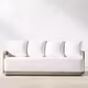 Pernele incluse sunt realizate din tesaturi 100% vopsite in solutie, rezistente la apa si pete, cu nucleu de spuma cu rezilienta ridicata, invelit in poliester moale, asigurand confort de lunga durata. Hardware-ul din otel inoxidabil este complet ascuns, pentru un design impecabil. Lemnul de tec capata in timp o patina argintie naturala daca este lasat netratat. Optional, este disponibila varianta cu tesatura complet impermeabila.