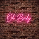 - Text: „OH BABY” iluminat cu LED-uri roz