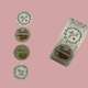 Rola conține 500 de stickere autoadezive, cu diametrul de 2.5 cm, în designuri florale și caligrafii elegante.