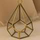 Terariu suspendabil cu design dodecaedru în bază și vârf piramidal, realizat din ramă metalică aurie și panouri din sticlă transparentă.