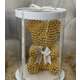 Un cadou spectaculos si elegant: urs decorativ realizat din perle aurii lucioase, cu fundita satinata inscriptionata, ambalat intr-o cutie cadou transparenta cu baza si capac alb rotund.